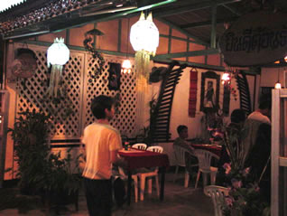 店の入り口です。なかなか雰囲気のある店です。タイの学生の皆さんと一緒にご飯を食べましょう。 |
